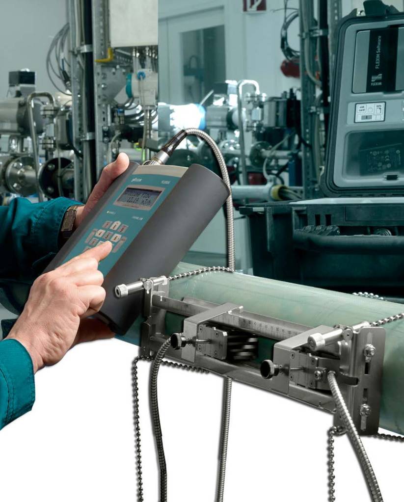 FLUXUS F – Non-invasive flow measurement technology from the technology leader.FLUXUS F ultrasonic liquid flowmeters measure the flow rate of liquids non-invasively with transducers mounted on the outside of the pipe. Since there is no need to open the pipe to attach the clamp-on liquid flowmeters, the installation of a measuring point does not affect user system operation in any way. The liquid flowmeter does not present any risk of leaks, it doesn’t cause any pressure drop and is not subject to wear and tear by the medium flowing inside.FLUXUS F – Non-invasive flow measurement technology from the technology leader.