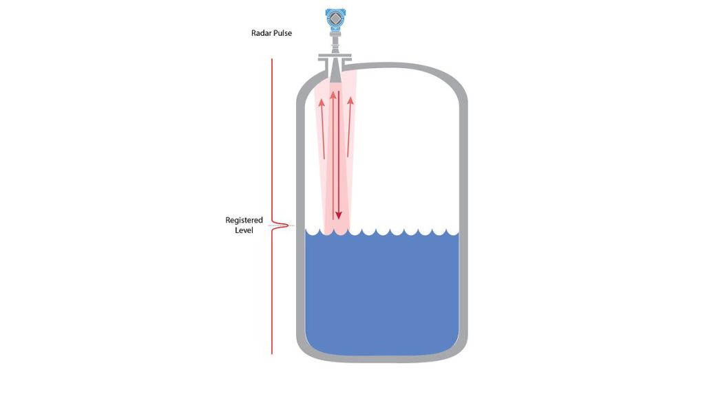 Rosemount non-contacting radar is based on Frequency Modulated Continuous Wave (FMCW) technology, which transmits a continuous radar signal with the frequency increasing over time to create a signal sweep. The signal is then reflected back to the antenna, to calculate the level.